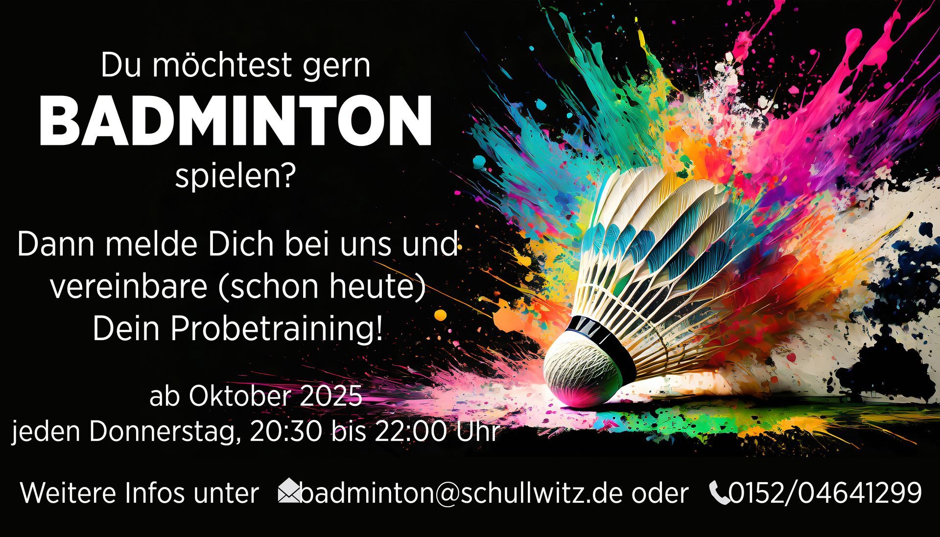 Ab Oktober starten wir wieder mit einer neuen Badmintongruppe. Melde Dich bereits jetzt an und vereinbare ein Probetraining.
